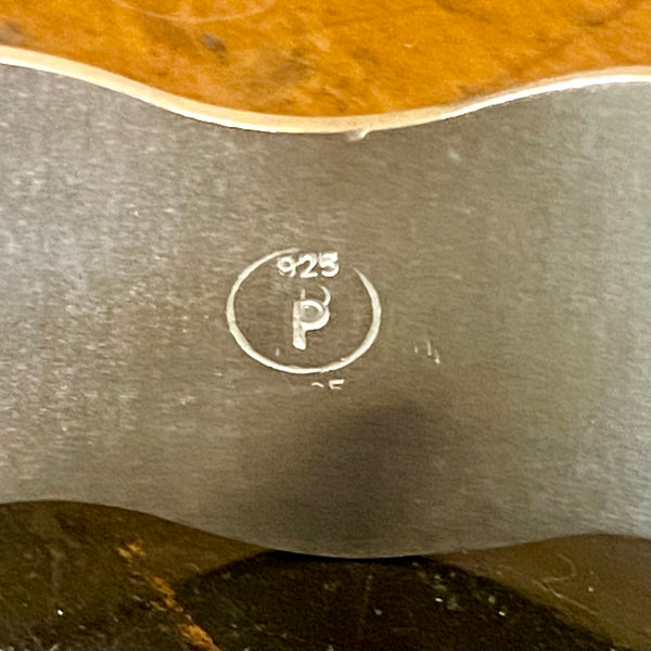 Get ready to ride the wave of style with this chunky, 2cm wide silver cuff bracelet. With its organic wave shape and bubbles of sterling silver, this one-of-a-kind piece is sure to catch some attention. And not only does it look great, but the cuff design also makes it incredibly versatile, perfect for any occasion and any wrist size. Made from solid sterling silver, weighing approximately 54 grams, this bracelet is not only stylish but also durable. You won't want to take it off!