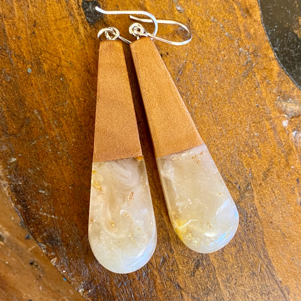 Transform your style with the daring addition of these earrings. Featuring stunning New Zealand kauri gum combined with swamp kauri, these earrings will bring a sense of adventure and boldness to any outfit. With a 6cm drop and 1.5cm width, they are the perfect statement piece. And the sterling silver ear hooks add a touch of elegance to complete the look. Take a risk and embrace your unique style with these one-of-a-kind earrings!