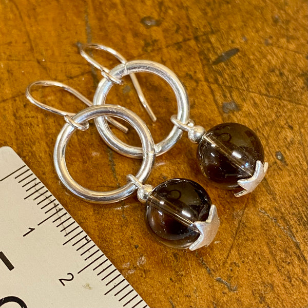 Beautiful natural smoky quartz stones set in fine silver stars and hanging from sterling silver