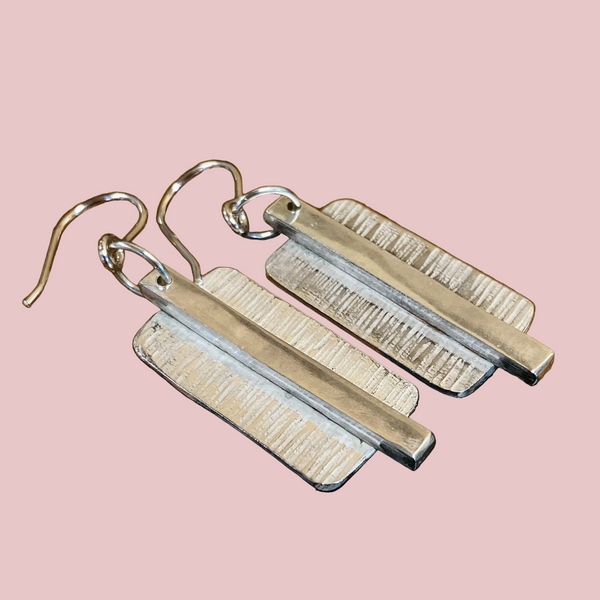 Background panels of textured sterling silver behind polished sterling silver bars